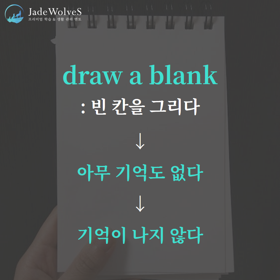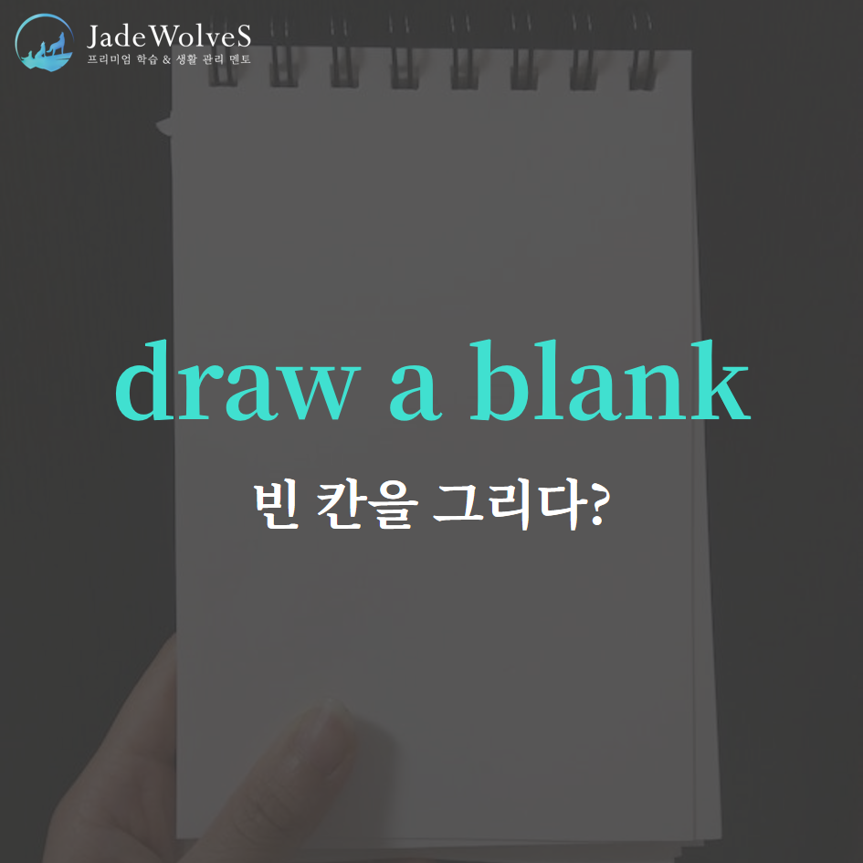 1) draw a blank : "빈 칸을 그리다"라고 해서 "기억이 나지 않다"라는 의미로 사용됩니다.