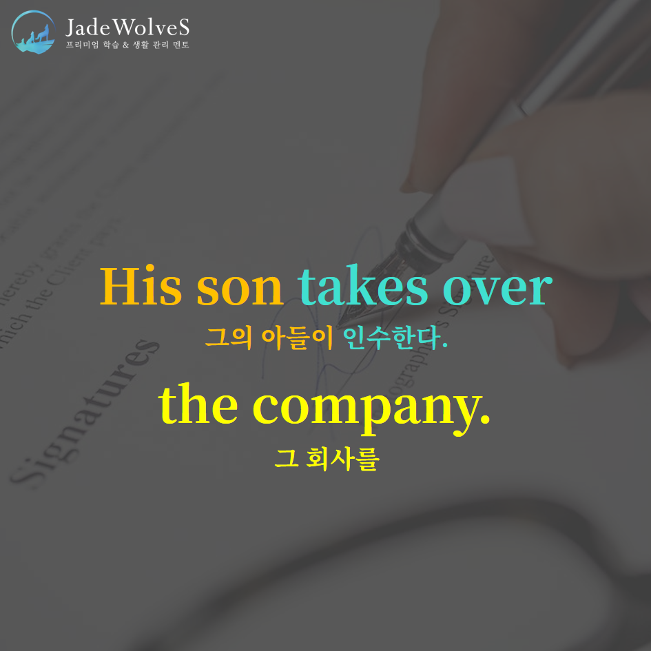 1) take over : "넘겨받다" 라고 해서 "인수하다" 라는 의미로 사용됩니다.