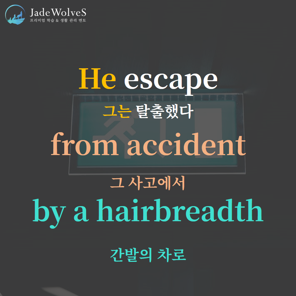 1) by a hairbreadth: "털끝만 한 틈으로"라고 해서 "간발의 차로"라는 의미로 사용됩니다.