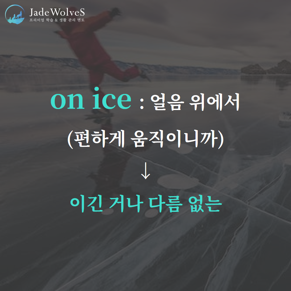 2) on ice : "얼음 위에서"라고 해서 "이긴 거나 다름없는"이라는 의미로 사용됩니다.