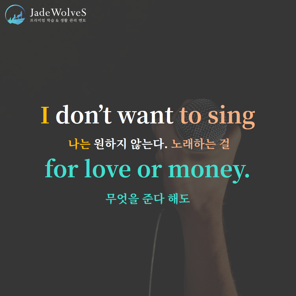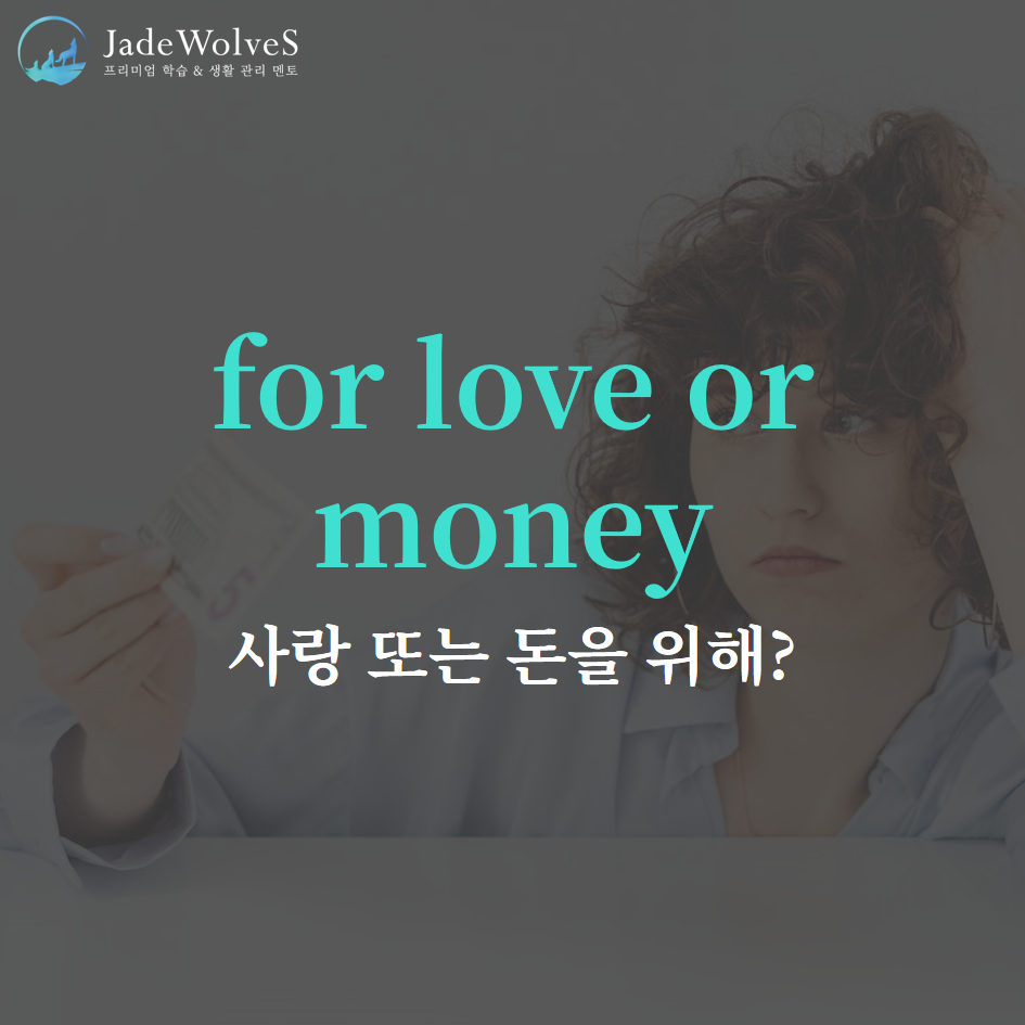 2) for love or money : "사랑 또는 돈을 위해서"라고 해서 "무엇을 준다 해도"라는 의미로 사용됩니다.