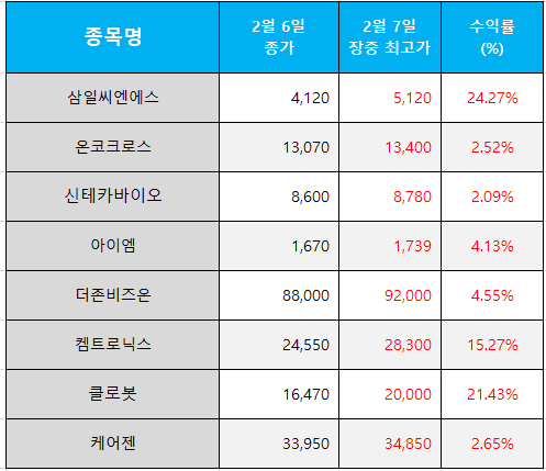 | 오늘의 관심 종목 수익률(2025.02.06) (0) | 2025.02.06 |
