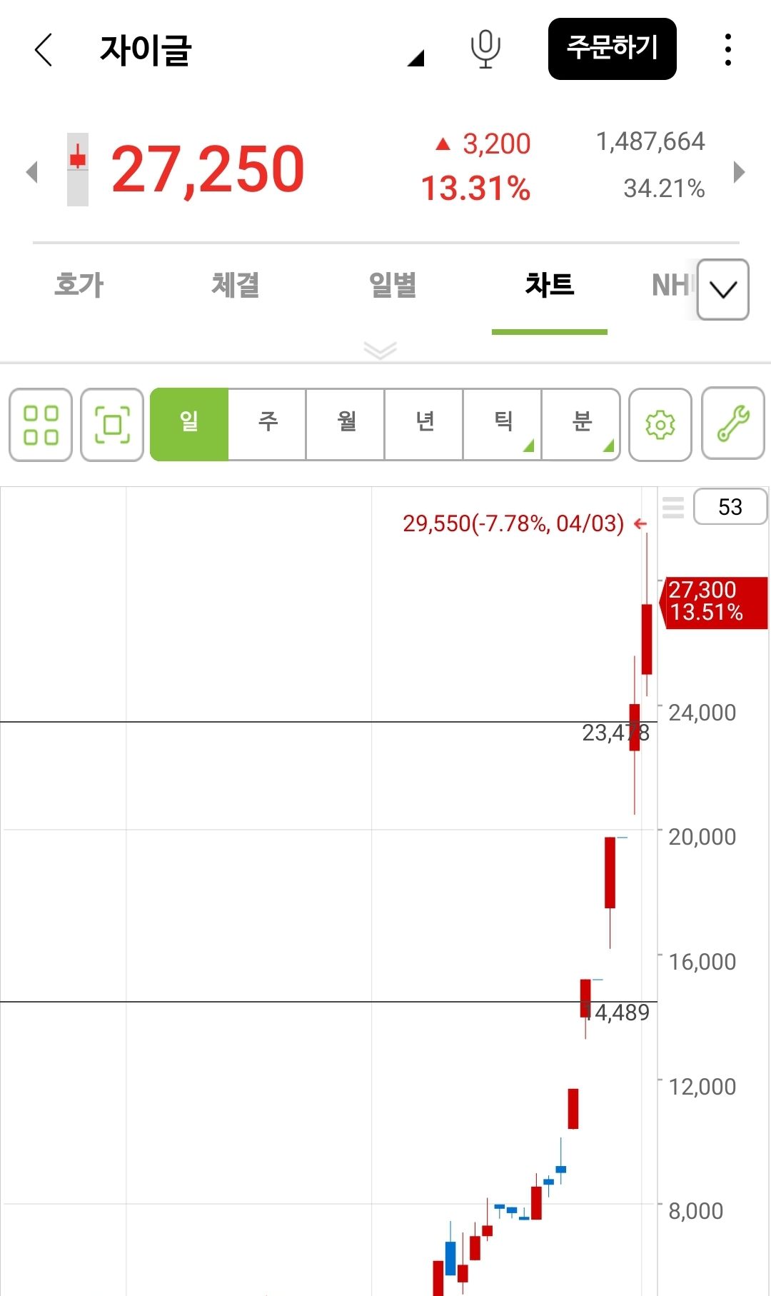20~21년 주식시장의 호황기가 끝나기 무섭게 열기는 빠르게 식어갔다. 고점에서 물린 개미들은 매입한 주식을 매도하지 못한 채 속앓이를 하고 있다. 하락장에 접어들면서 소외되었던 종목들이 테마를 가지고 독보적으로 급등하며 주목받고 있다. 주식을 주제로 공부하지 않은 개미라면 푼돈으로 과감한 투자를 할 전략이 있다. 경제학의 수요와 공급의 법칙에서 공급이 급격히 줄어들면 가격이 급등한다는 것을 주식시장에서 적용할 수 있다. 바로 유통주식 수가 현격히 낮은 주식들을 찾아보는 것이다. 자이글이라는 종목을 살펴보도록 하자.