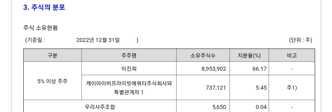 주식 종목에서 유통물량이 상당히 적은 종목에 속한다.