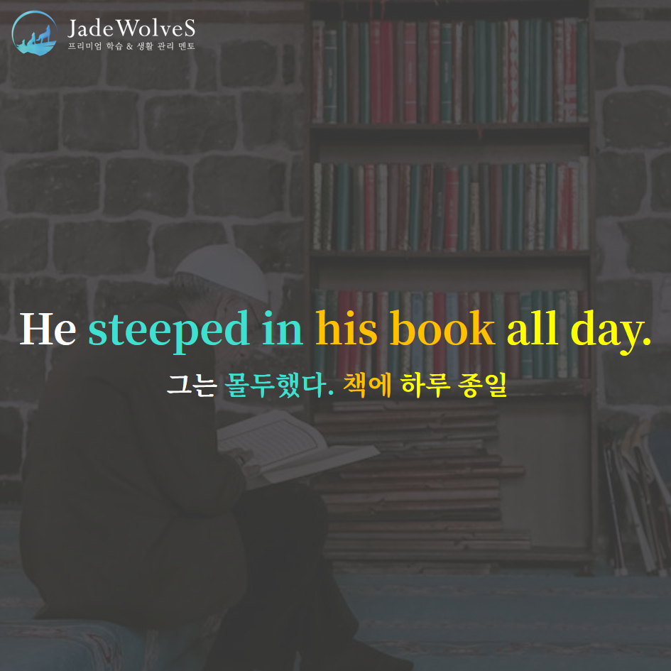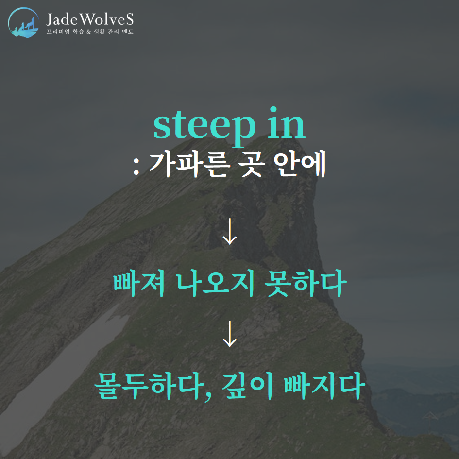 1) steep in : "가파른 곳 안에"라고 해서 "몰두하다, 깊이 빠지다"라는 의미로 사용됩니다.