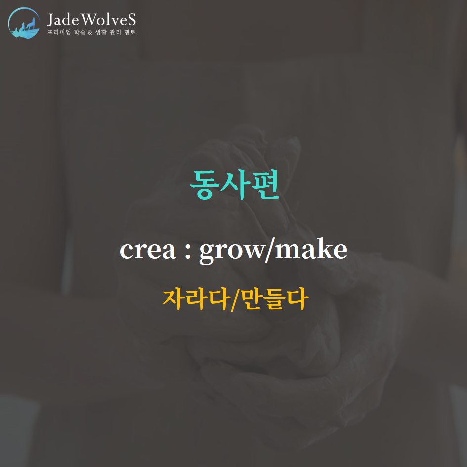 "crea : 자라다/만들다"라는 의미로 동사를 나타냅니다.