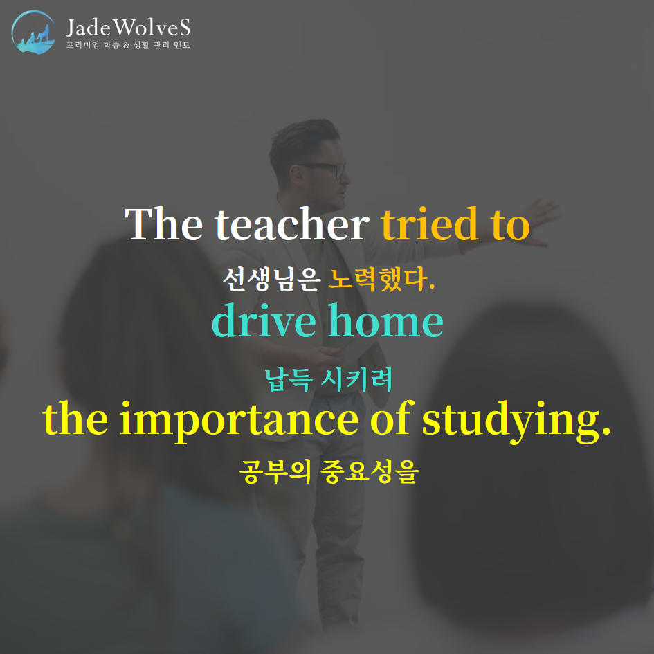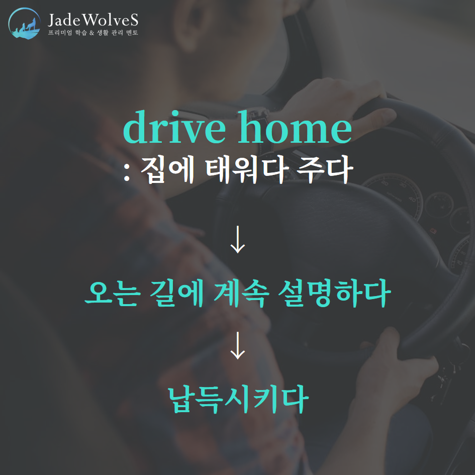 2) drive home : "집에 태워다 주다"라고 해서 "납득시키다"라는 의미로 사용됩니다.