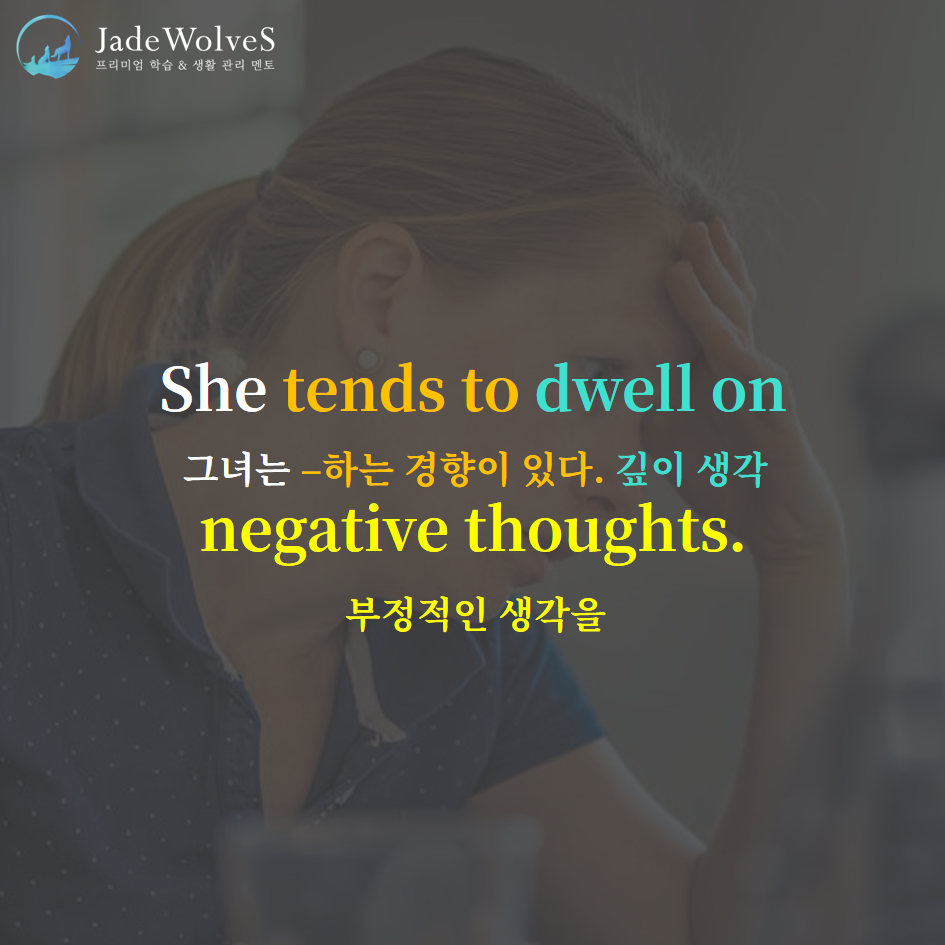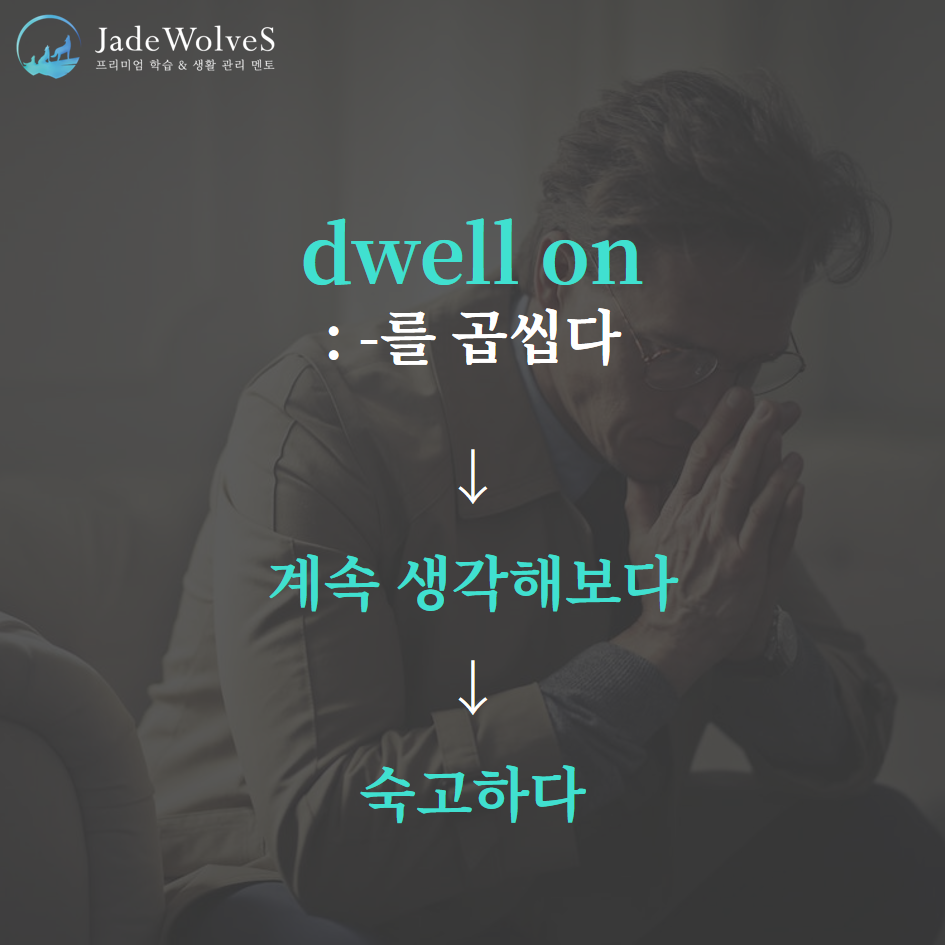 1) dwell on : "~을 곱씹다"라고 해서 "숙고하다"라는 의미로 사용됩니다.