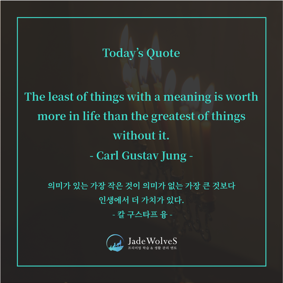 분석심리학의 개척자인 칼 구스타프 융은 스위스 출신 의학자이다. 그는 어릴 적 목사의 아들로 태어나 가업을 이어받지 않고 취리히 대학교에서 의학 공부를 하였다. 그는 프로이트와 함께 연구하며 아들러의 사회심리학의 중요성도 인식하며 분석심리학의 기초를 다져갔다. 그리하여 내면의 무의식이 모여 하나의 개체가 되어 자기 원형의 초월적 기능을 한다고 주장하였다. 그의 말처럼 작은 일이라도 의미가 있다면 무의식에 큰 영향을 미친다고 여겼고 작은 일도 중요한 의미를 담으라고 말한 건 아닐까.