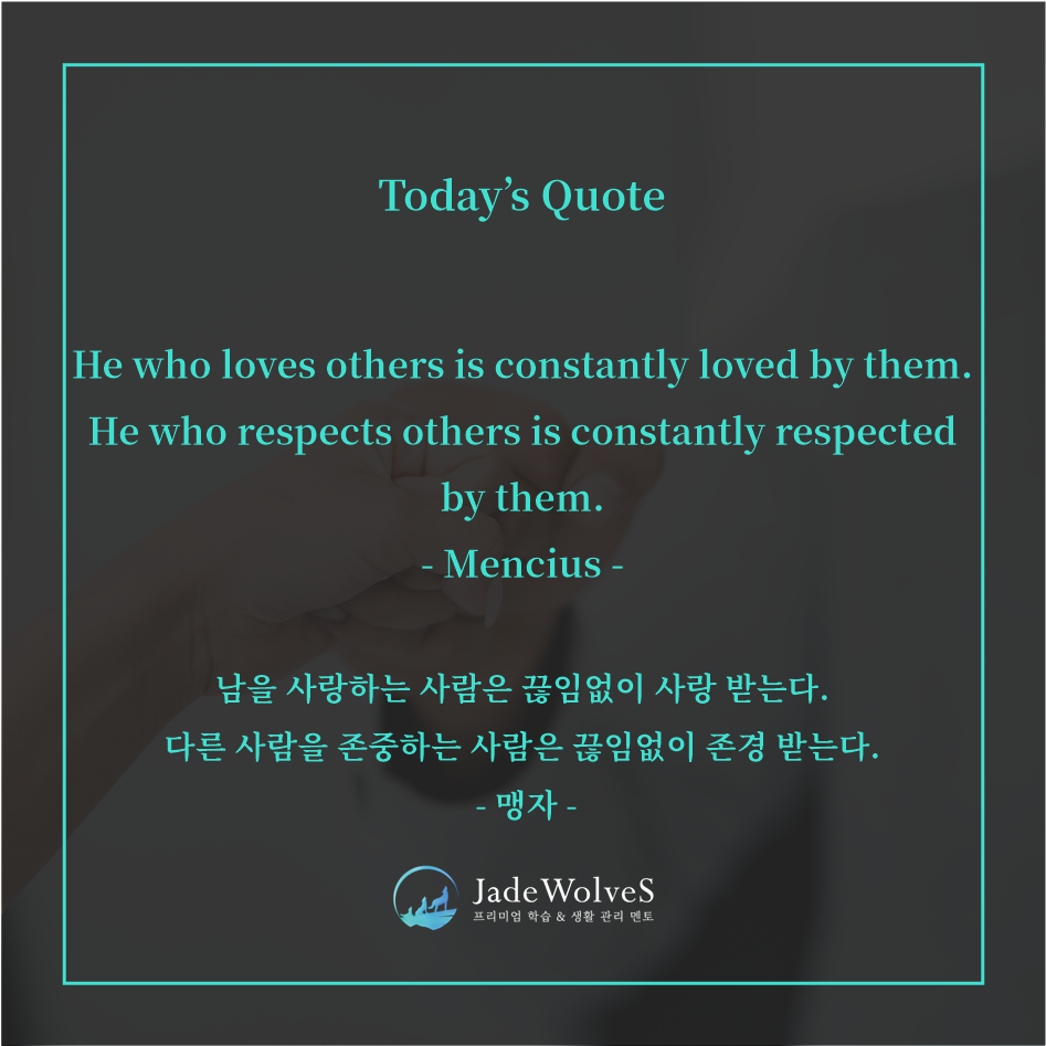 사랑받거나 존경받는 인물이 그렇게 된 이유는 먼저 자신이 실천한 덕분입니다.