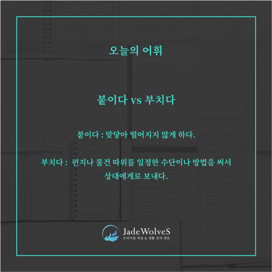 청랑의 어휘력 높이기 : 오늘은 '붙이다'와 '부치다'의 차이점에 대해 알아보겠습니다.