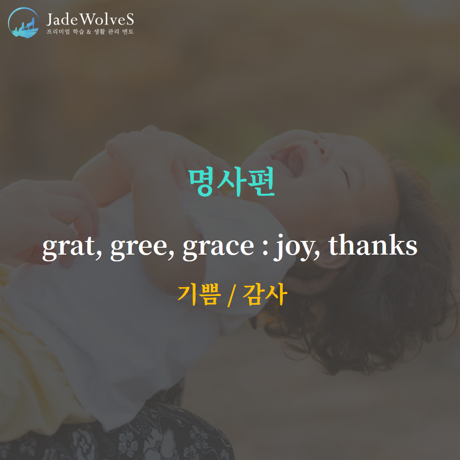 "grat/gree/grace : 기쁨/감사"라는 의미로 명사를 나타냅니다.