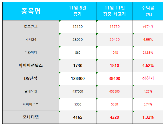 | 오늘의 관심 종목(2024.11.11) (0) | 2024.11.11 |