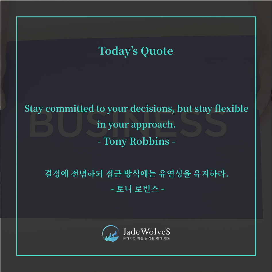 그 목표를 달성하기 위한 방법이 예상과 다를 때는 다른 방법을 받아들이는 유연성 또한 필요합니다.