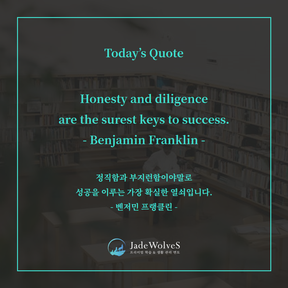 정직과 부지런함이야말로 성공을 이루는 가장 확실한 열쇠입니다.