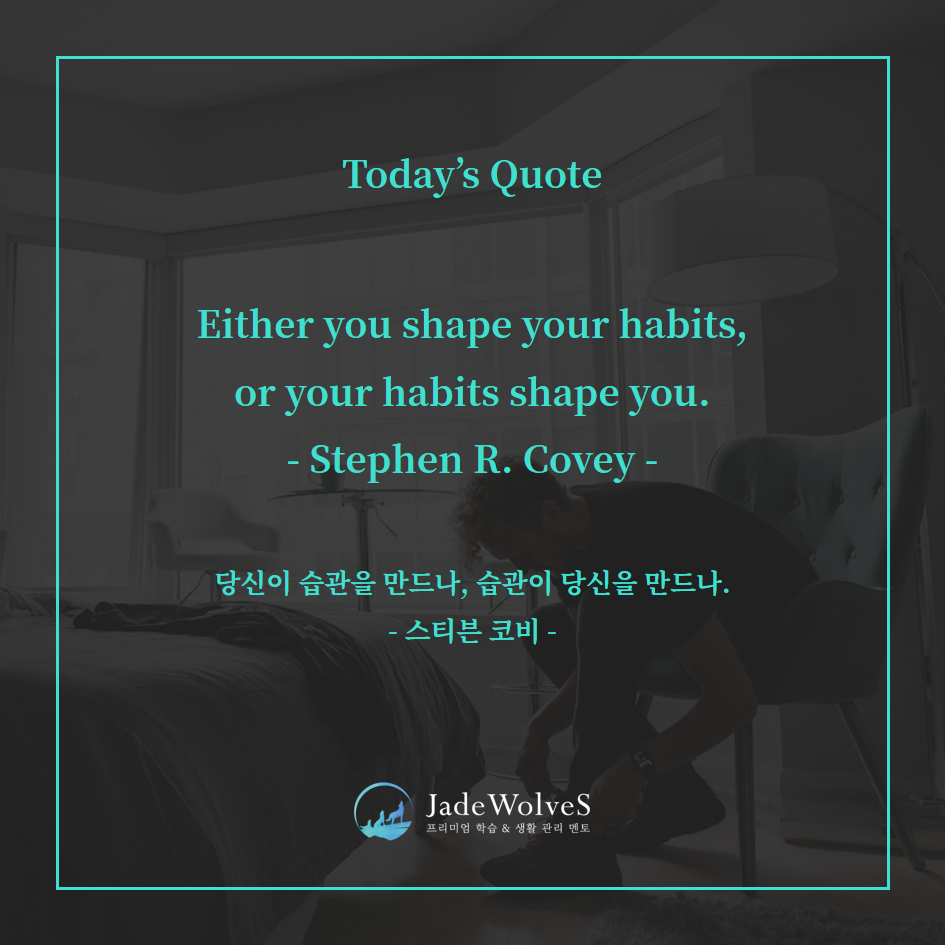 의식적으로 쌓아 올린 습관들이 우리의 인격과 미래를 결정짓는 중요한 토대가 되는 것이죠.