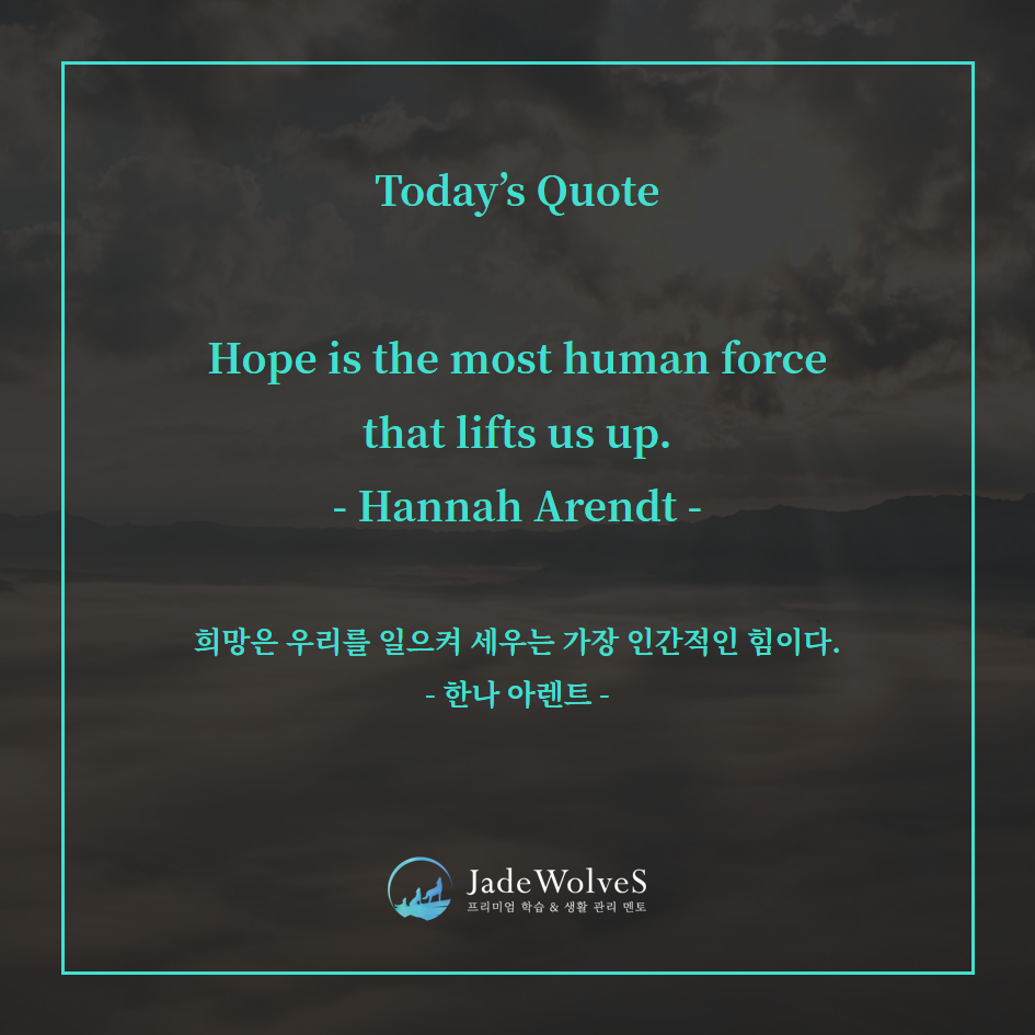 “희망은 우리를 일으켜 세우는 가장 인간적인 힘이다.”