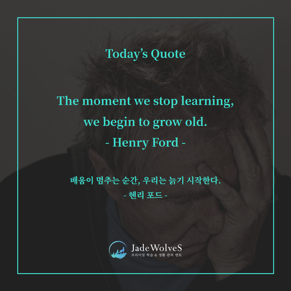 “배움이 멈추는 순간, 우리는 늙기 시작한다.”