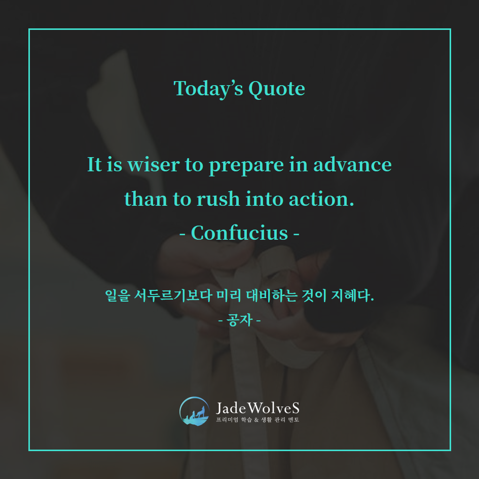 “일을 서두르기보다 미리 대비하는 것이 지혜다.”