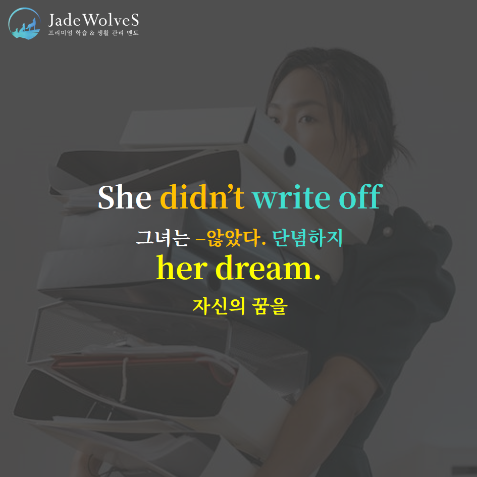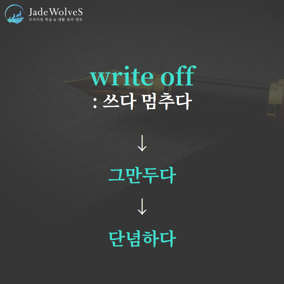 2) write off : "쓰다 멈추다"라고 해서 "단념하다"라는 의미로 사용됩니다.