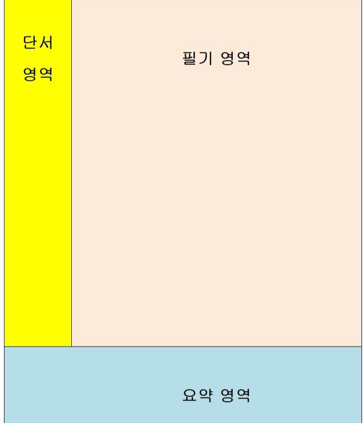 - 페이지 하단 2~3줄 공간에 학습한 내용을 요약.