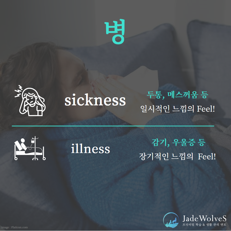 "sickness/illness는 병"이라는 같은 의미를 지니고 있습니다.