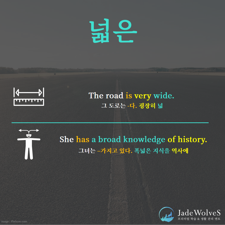 오늘은 '넓은'이라는 형용사 어휘의 뉘앙스에 대해 알아보겠습니다.