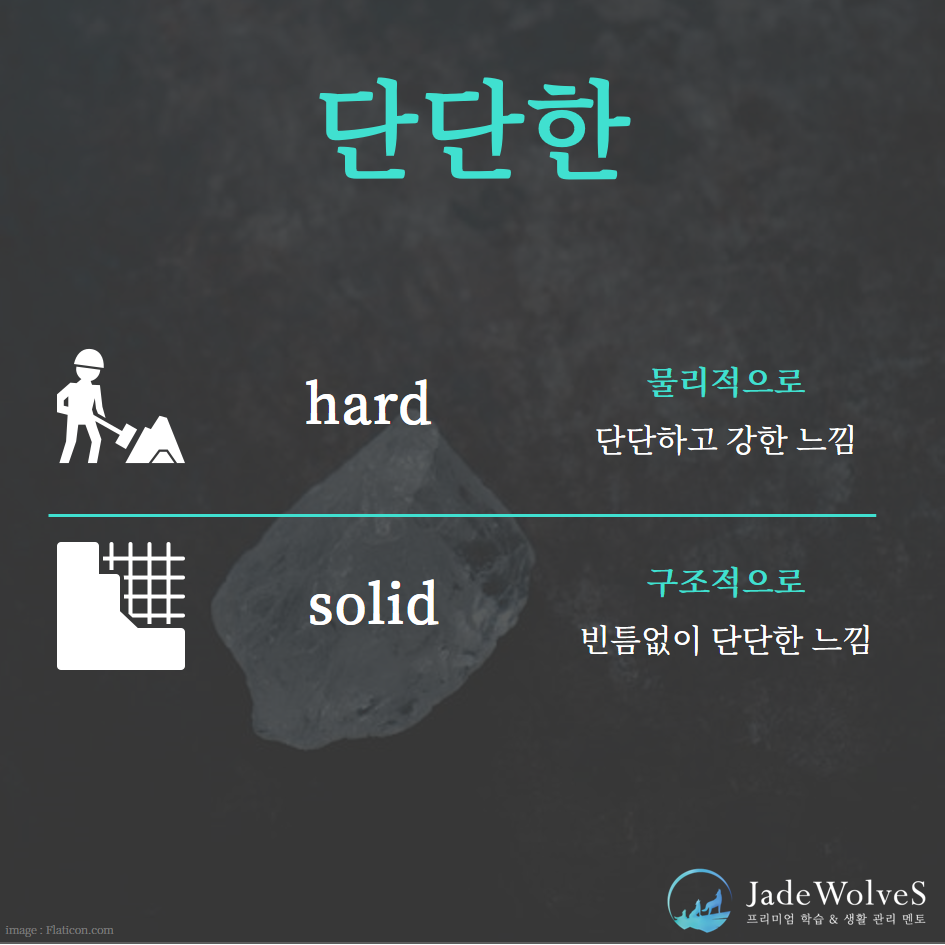 "hard/solid는 단단한"이라는 같은 의미를 지니고 있습니다.
