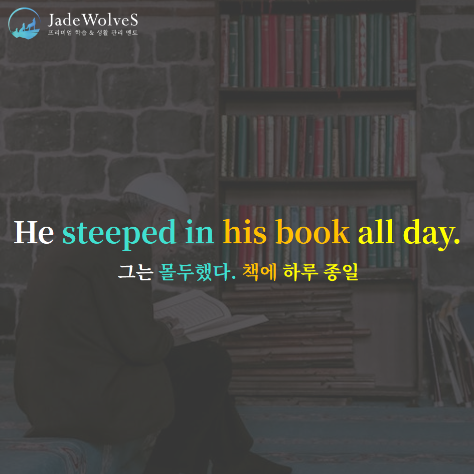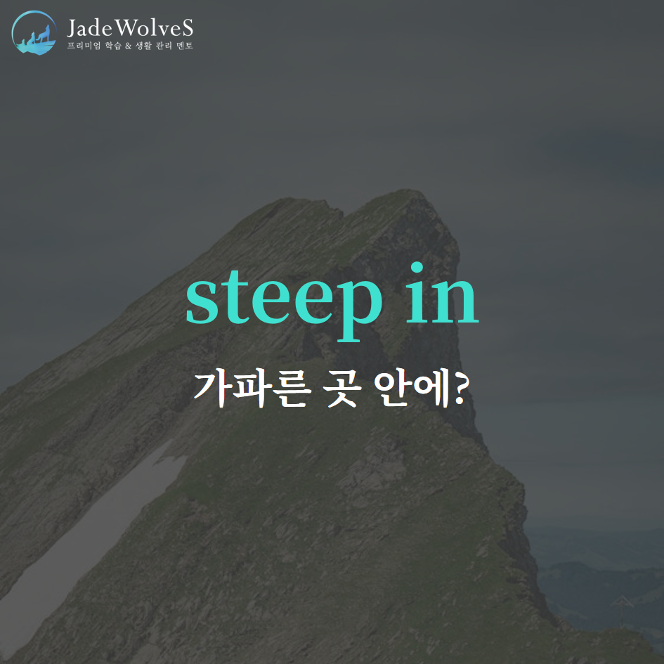 2) steep in : "가파른 곳 안에"라고 해서 "깊이 빠지다, 몰두하다 "이라는 의미로 사용됩니다.