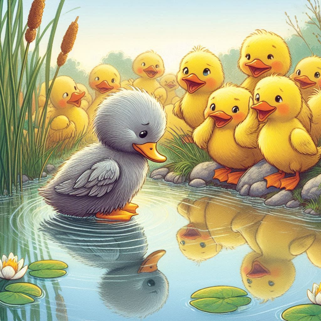Amid a brood of ducklings, one hatchling stood out with an unusually homely appearance.Ostracized and belittled for his looks, he wandered in solitude, grappling with isolation and longing.Over time, he found resilience in his search for belonging, slowly uncovering his true identity.Ultimately, he transformed into a magnificent swan, proving that genuine beauty and worth can lie beyond superficial judgments.