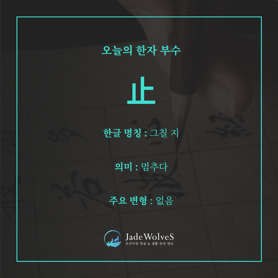 멈춤, 금지, 자제, 조절의 의미를 가진 한자에 사용됩니다.