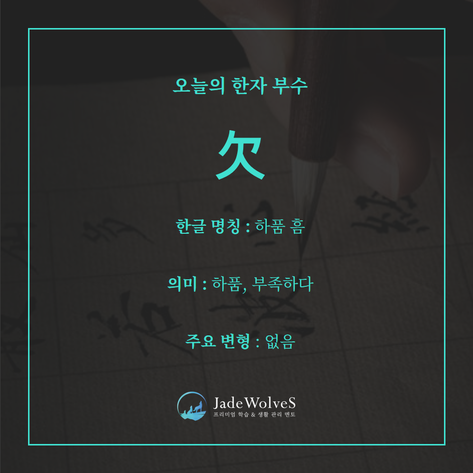 하품, 결핍, 갈망, 부족, 숨쉬기, 기지개와 관련된 의미를 가진 한자들에 사용됩니다.