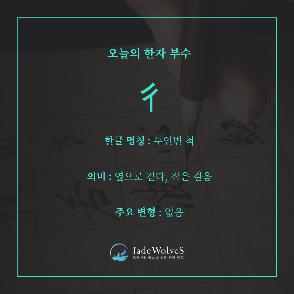 주로 행동, 규범, 이동, 질서, 법률과 관련된 한자에 사용되며 움직임이나 행위의 시작점을 나타내는 부수로 기능합니다.