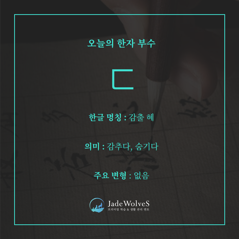 한자 匸(가릴 혜)는 “왼쪽이 트인 상자나 구획”의 모습을 본뜬 상형(象形) 요소로서,