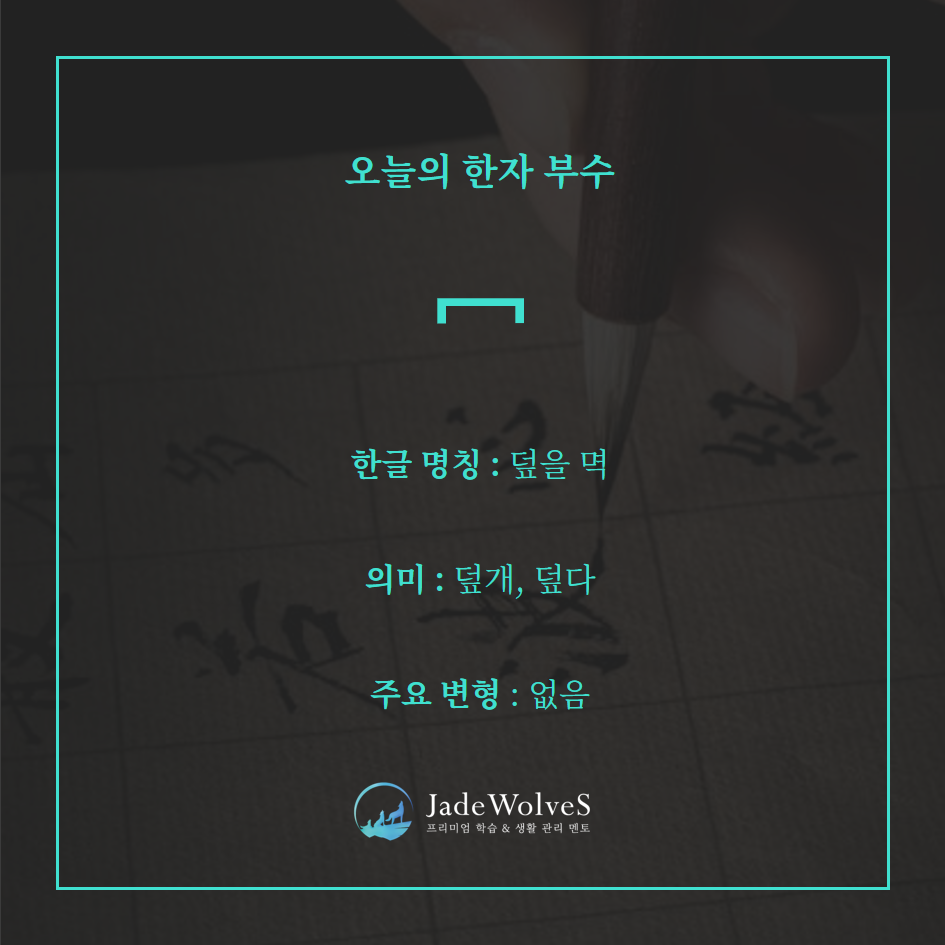 冖(멱)은 상형 문자 로, 무언가를 덮어씌운 모습을 본뜬 글자입니다.