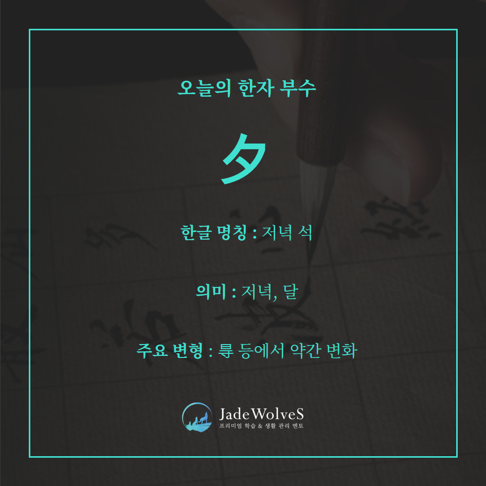 그래서 해가 진 뒤의 시간이라는 저녁의 의미를 직설적으로 나타내었고, 한글 독음도 ‘저녁 석’으로 읽게 되었습니다.