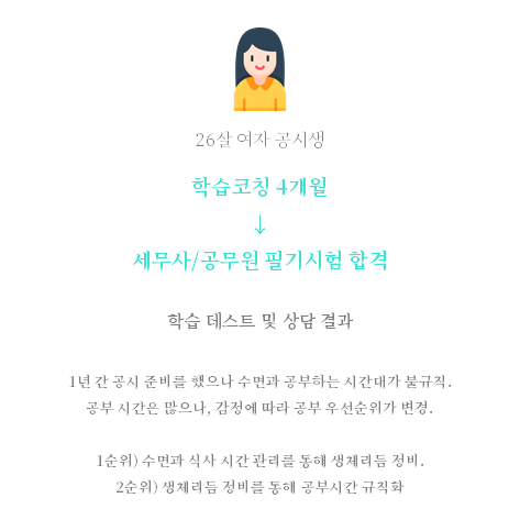 20년도 코로나로 인해 스터디 그룹이 해체되면서 세무사 시험 준비가 미흡하여 1차에서 탈락하셨습니다. 21년에 세무사 공부를 하였지만 생각보다 학습이 잘 이뤄지지 않아 공부하는 방법에 대한 조언과 학습 루틴을 잡고 싶다며 코칭에 지원하셨습니다.