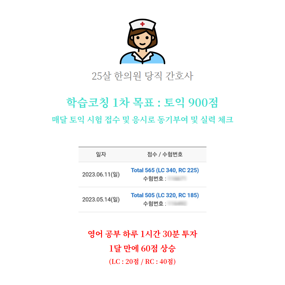 또한, B양은 토익 점수 400~500점을 오가면서 기본기가 매우 부족한 상태였습니다.