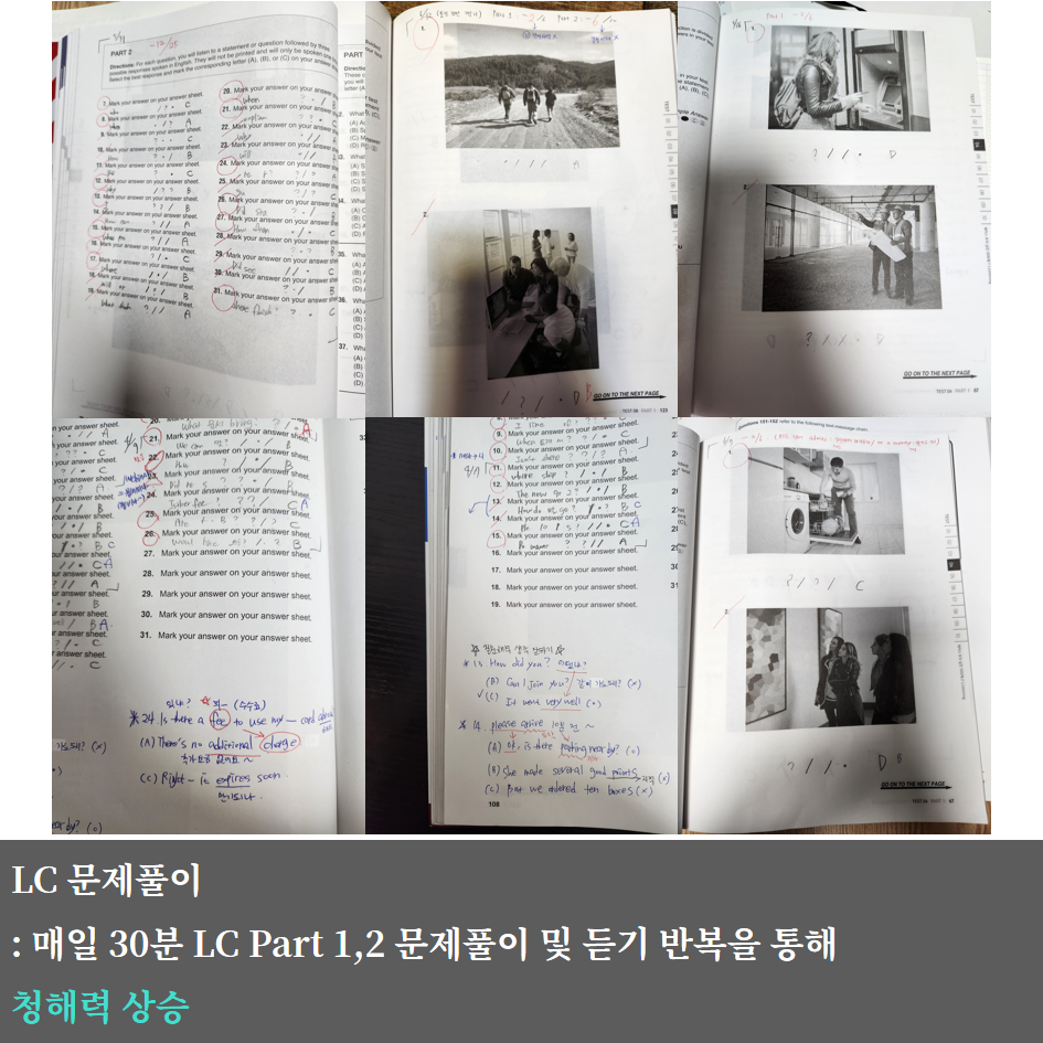 기본기를 다지기 위해 LC는 Part 1,2를 문제풀이와 반복 듣기로 청해력 상승,