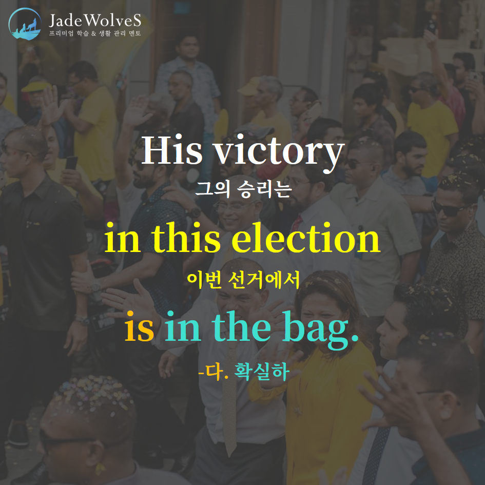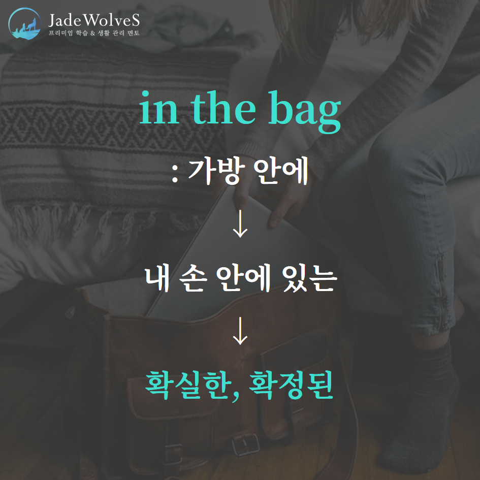 1) in the bag : "가방 안에"라고 해서 "확실한, 확정된"이라는 의미로 사용됩니다.
