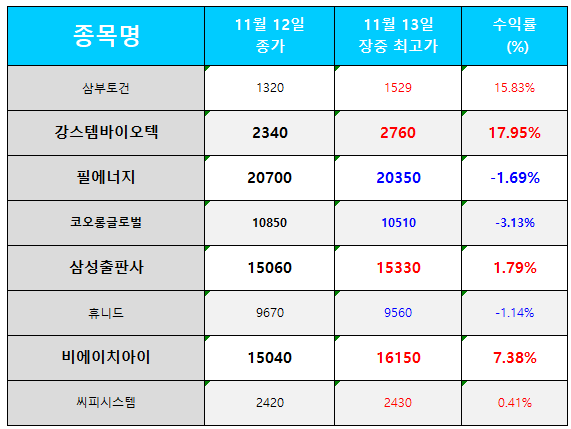 | 오늘의 관심 종목(2024.11.13) (0) | 2024.11.13 |