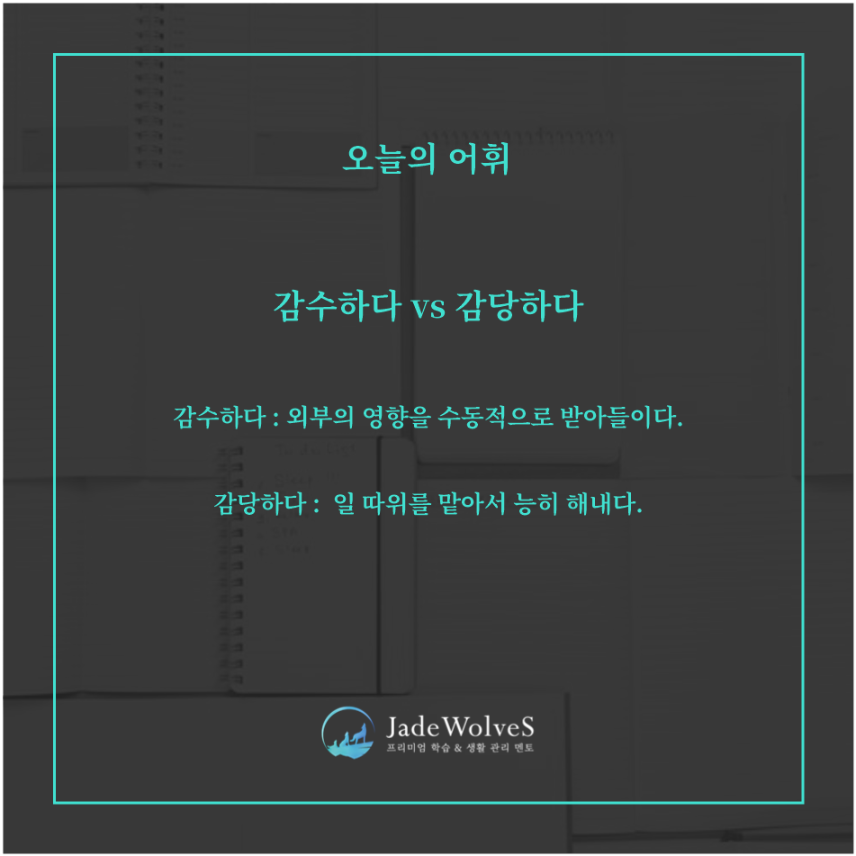 청랑의 어휘력 높이기 : 오늘은 '감수하다'와 '감당하다'의 차이점에 대해 알아보겠습니다.
