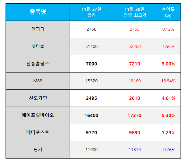 | 오늘의 관심 종목(2024.11.28) (0) | 2024.11.28 |