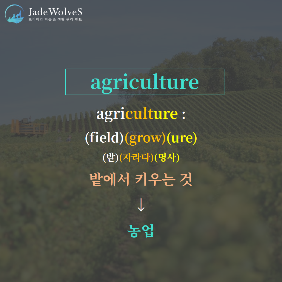 "cult : 자라다, 재배하다"라는 의미로 동사를 나타냅니다.