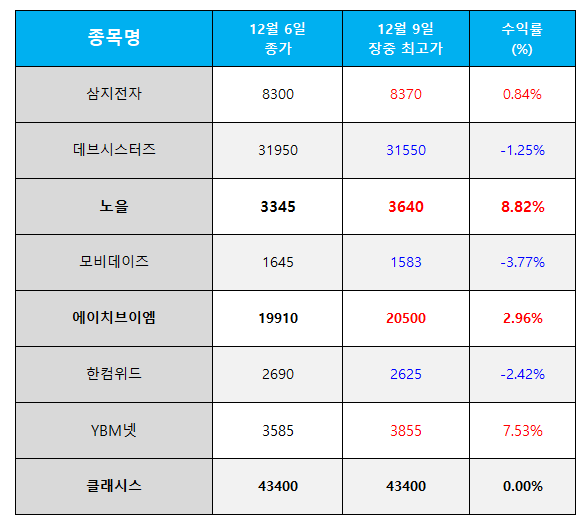 | 오늘의 관심 종목 수익률(2024.12.10) (0) | 2024.12.10 |
