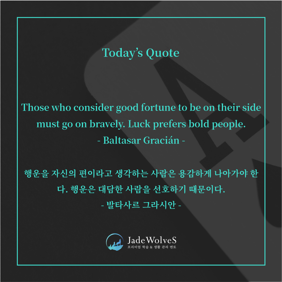 용기 있게 나아가며 도전할 때 비로소 행운은 나에게 다가옵니다.