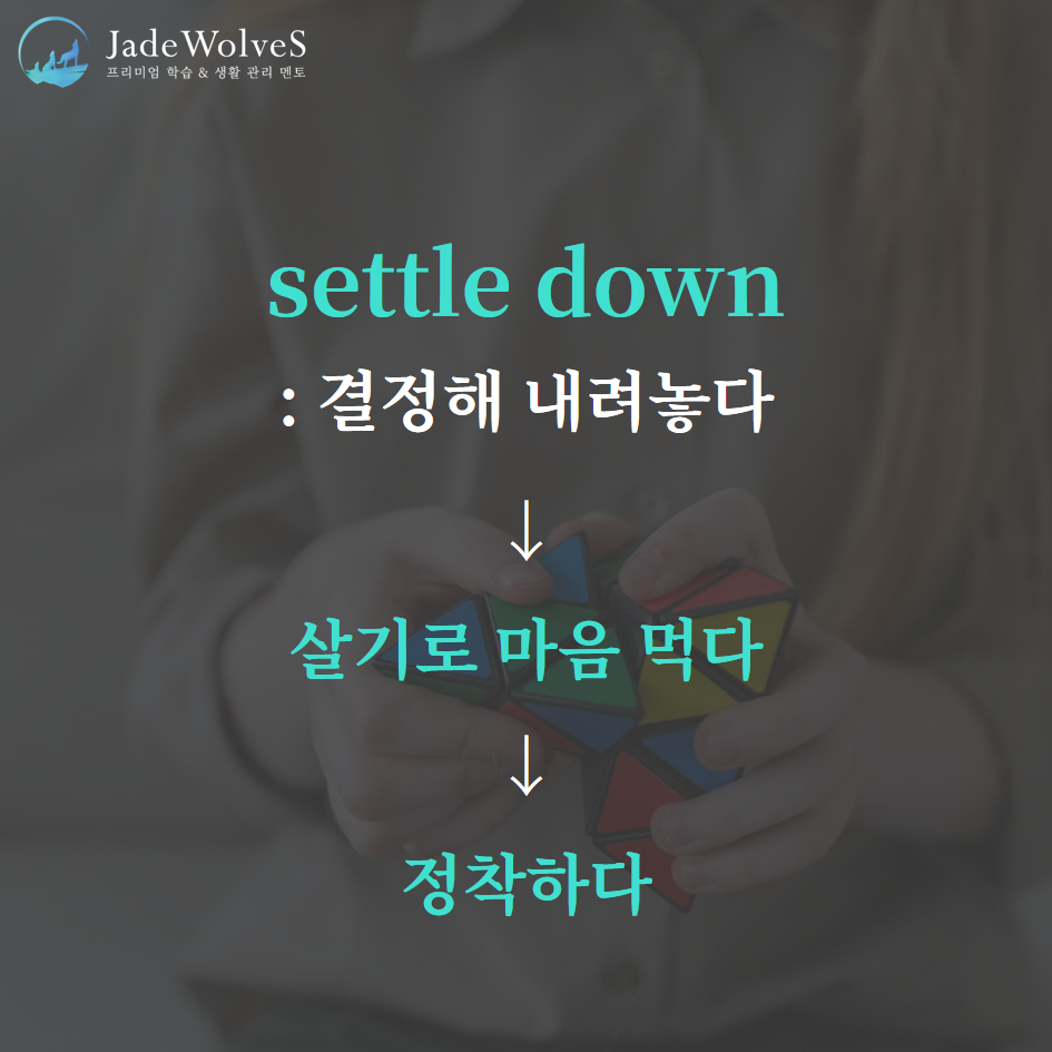 1) settle down : "결정해 내려놓다"라고 해서 "정착하다"라는 의미로 사용됩니다.
