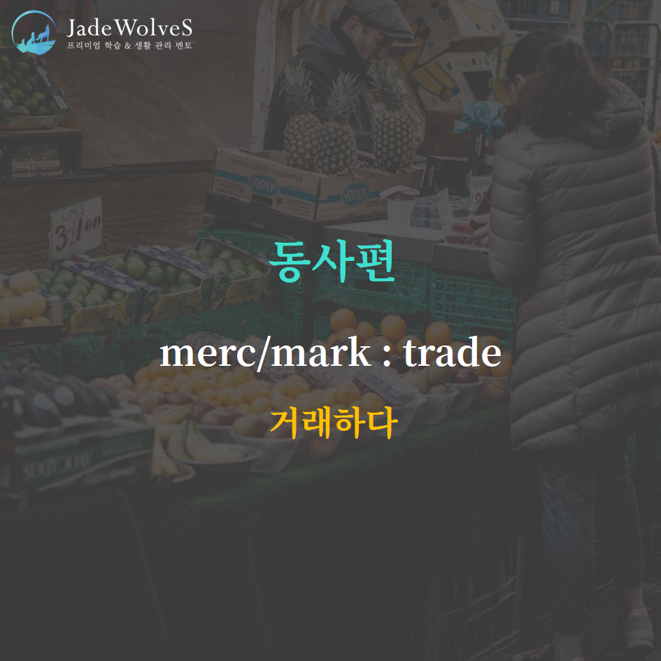 "merc/mark- : 거래하다"라는 의미로 동사를 나타냅니다.