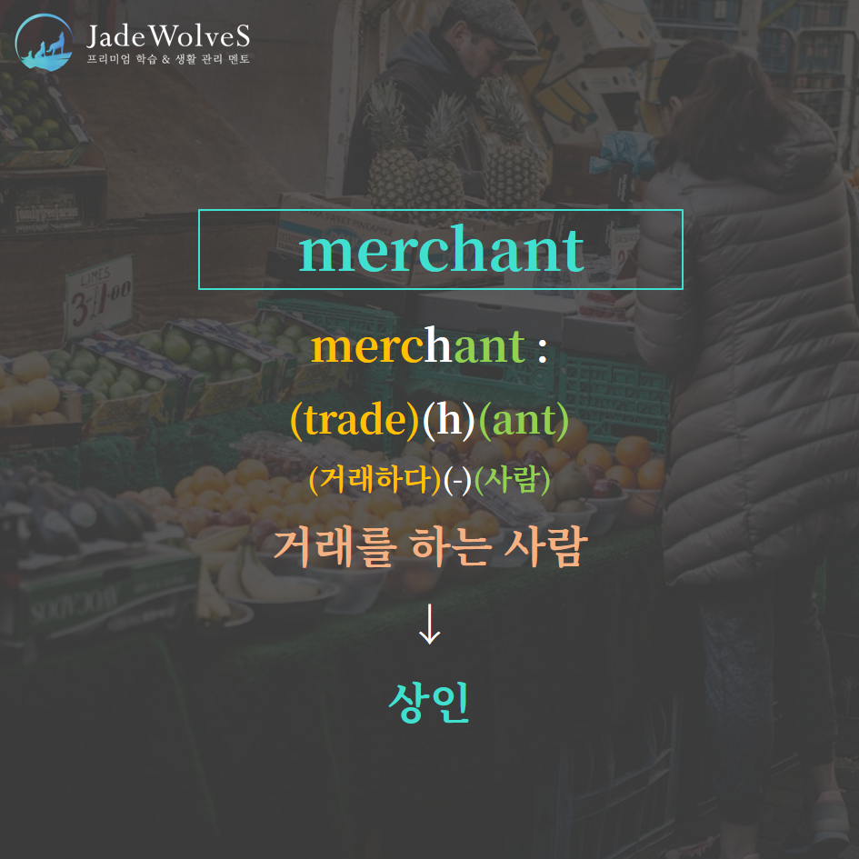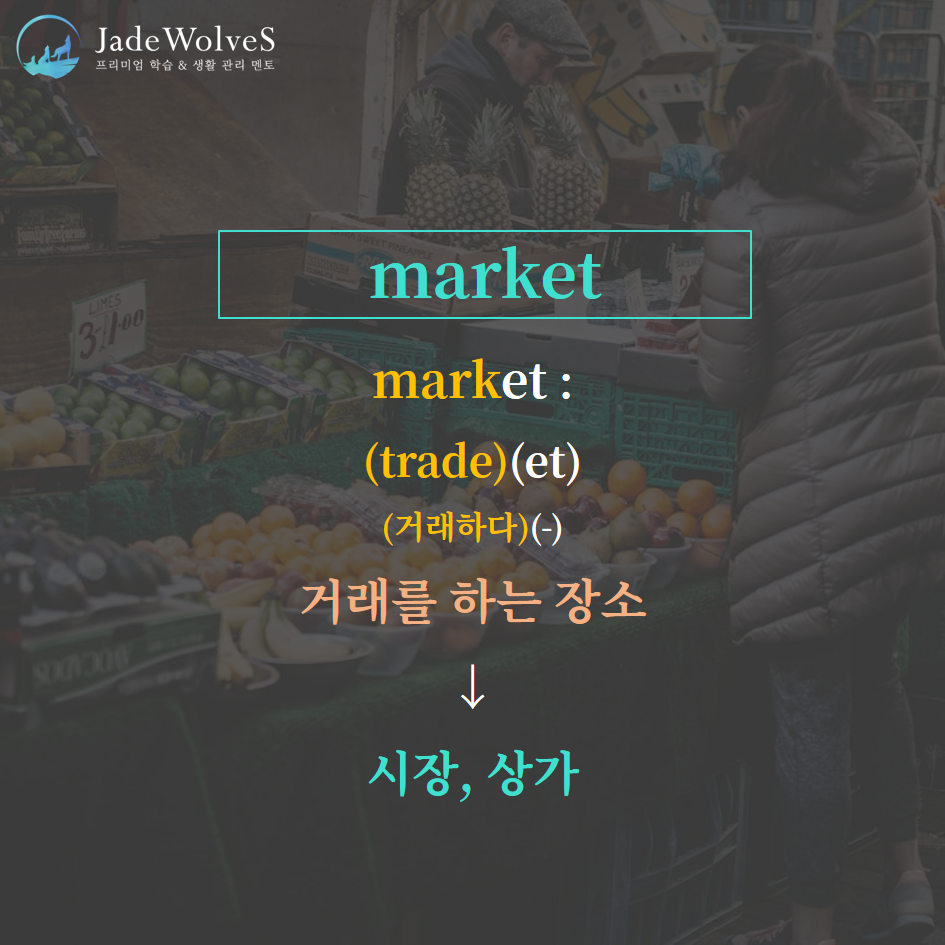 "merc/mark- : 거래하다"라는 의미로 동사를 나타냅니다.