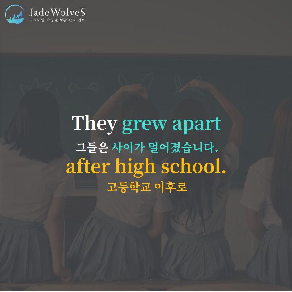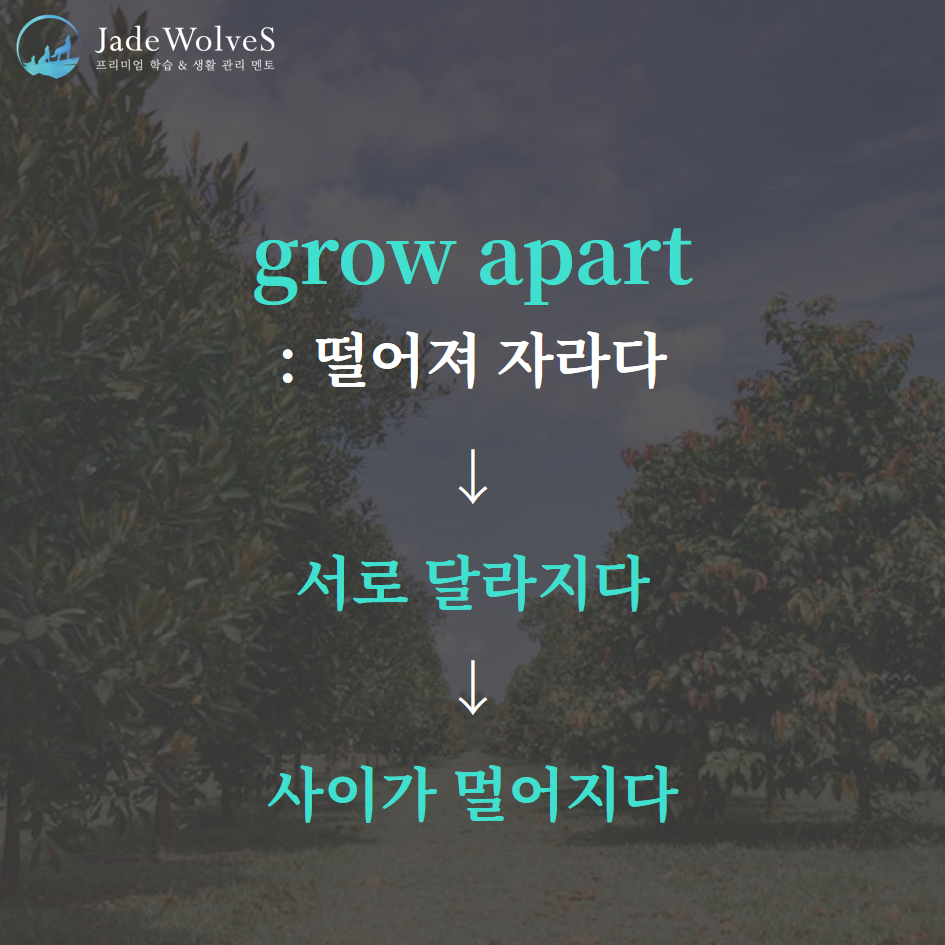2) grow apart : "떨어져 자라다"라고 해서 "사이가 멀어지다"라는 의미로 사용됩니다.